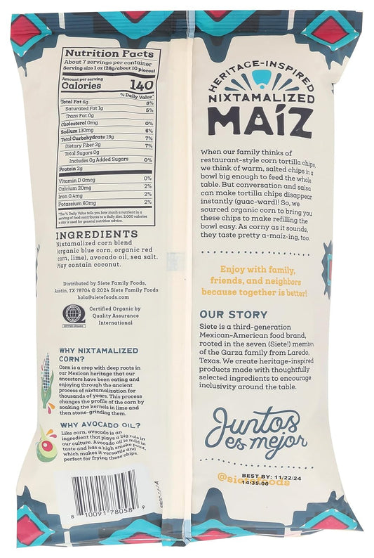 Siete Sea Salt Blue Corn Tortilla Chips, 7.5 oz