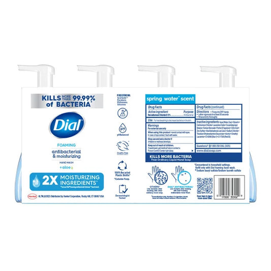 Dial Antibacterial & Moisturizing Foaming Hand Wash + Aloe, Spring Water Scent, 7.5 fl oz, 4 ct
