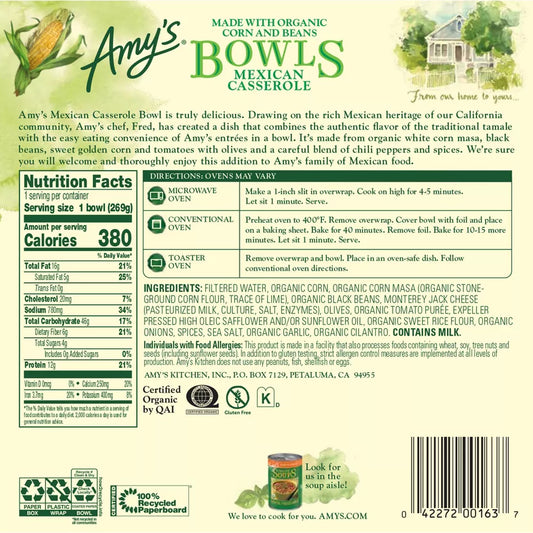 Amy's Tortilla Casserole & Black Beans Bowl, 9.5 oz