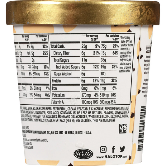 Halo Top Chocolate Chip Cookie Dough Light Ice Cream, 16 oz