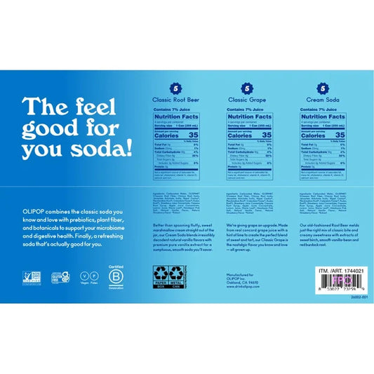 Olipop Prebiotic Soda, Variety Pack, 12 fl oz, 15 ct