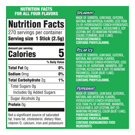 Extra Sugar Free Chewing Gum, Mint Variety Pack, 15 Sticks, 18-Count
