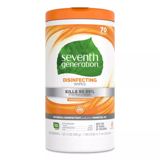 Seventh Generation Lemongrass Citrus Disinfecting Wipes, 70 Count