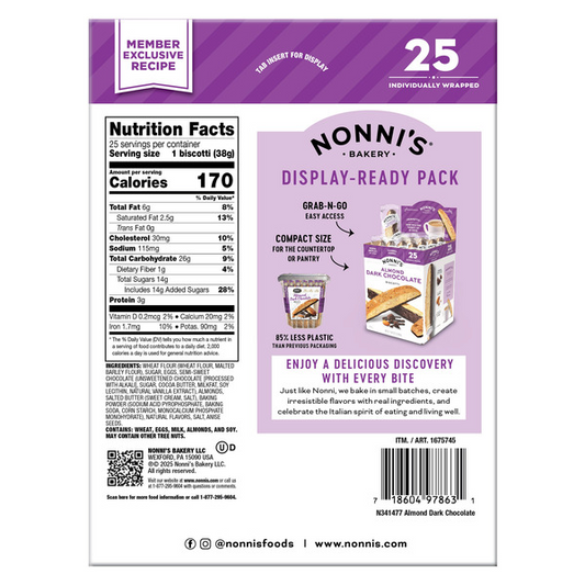 Nonni’s Biscotti, Almond Dark Chocolate, 1.34 oz, 25-count