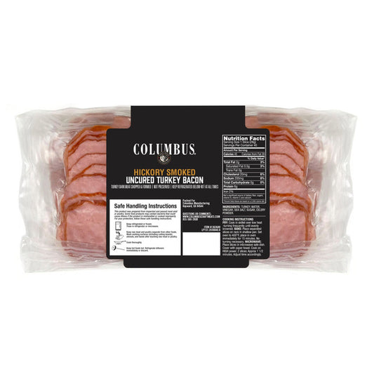 Columbus Uncured Turkey Bacon, Hickory Smoked, Sliced, 2.5 lbs
