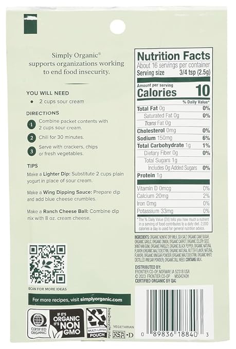 Simply Organic Ranch Dip Mix, 1.5 oz