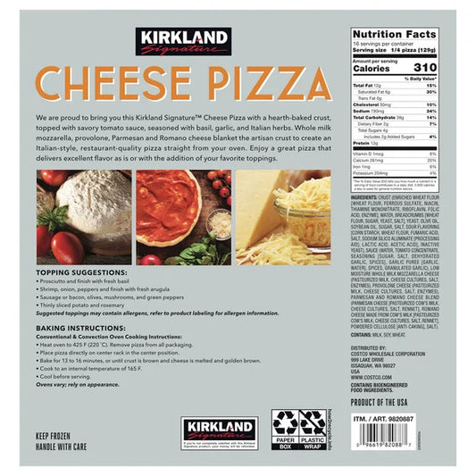 Kirkland Signature Cheese Pizza Thin Crust 4 ct, 18.25 oz