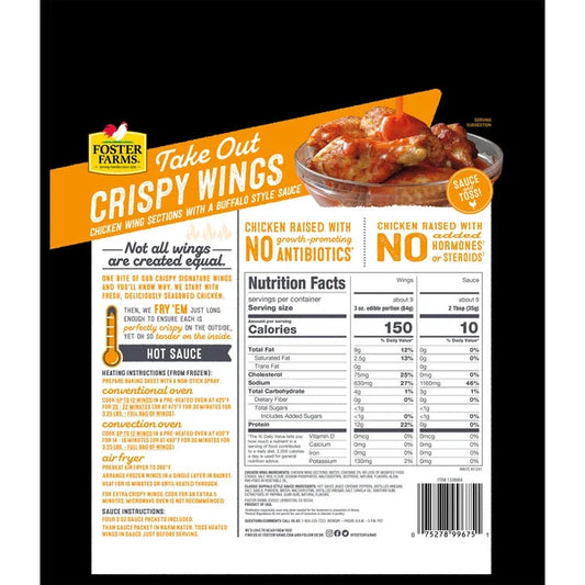 Foster Farms Take Out Crispy Chicken Wings, Classic Buffalo, 4 lbs