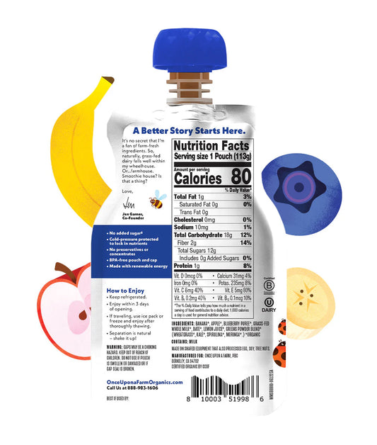 Once Upon A Farm Organic Whole Milk Smoothies Banana Blueberry Blast, 4 oz