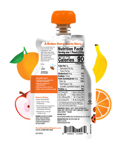 Once Upon A Farm Organic Whole Milk Smoothies Orange Squeeze, 4 oz