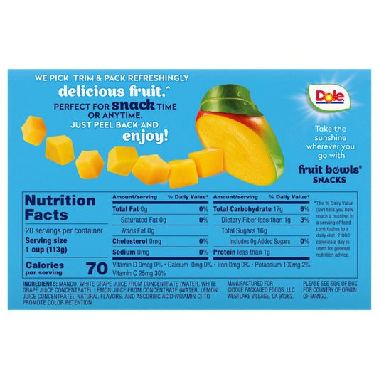 Dole Mango Fruit Bowls, 4 oz, 20-count