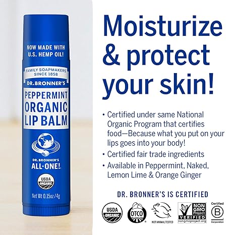 Dr. Bronner's Organic Peppermint Lip Balm, 0.15 oz