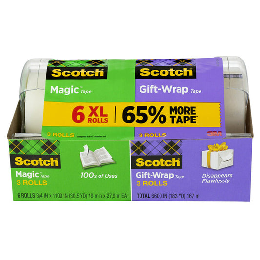 Scotch Magic Tape and Gift-Wrap Tape with Dispenser, 3/4" x 1100", Clear, 6 ct