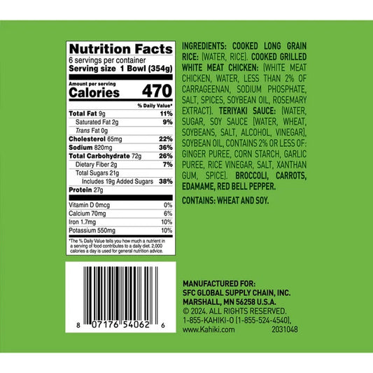 Kahiki Chicken Rice Bowl with Teriyaki Sauce, 12.5 oz, 6 ct