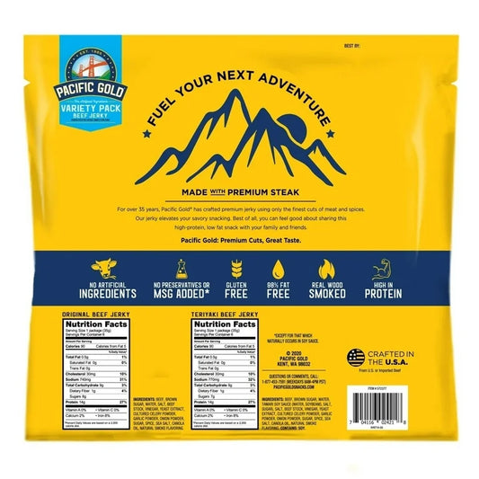 Pacific Gold Beef Jerky, Variety Pack, 15 oz, 12-count