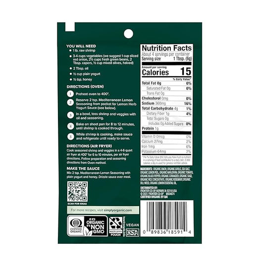 Simply Organic Mediterranean Lime Seasoning Mix, 0.85 oz