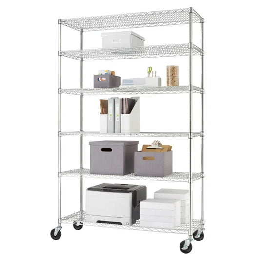 TRINITY 6-Tier Wire Shelving Rack, 48" x 18" x 72" NSF, Includes Wheels*