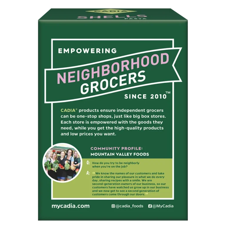 Cadia Organic Shells Pasta, 16 oz, is a high-quality organic pasta made from premium durum wheat semolina. The shell shape is perfect for capturing sauces and adding a delightful texture to your dishes. Free from artificial additives and preservatives, it offers a wholesome and natural taste. Ideal for a variety of recipes, from creamy pasta salads to hearty baked dishes, this shells pasta brings a touch of authenticity to your meals.