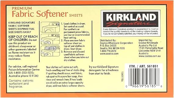 Kirkland Signature Fabric Softener Sheets 2 ct, 250 sheets