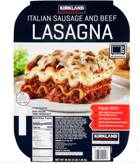 Kirkland Signature Italian Sausage and Beef Lasagna, 3 lbs, 2 ct