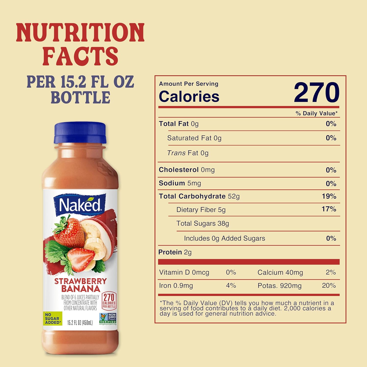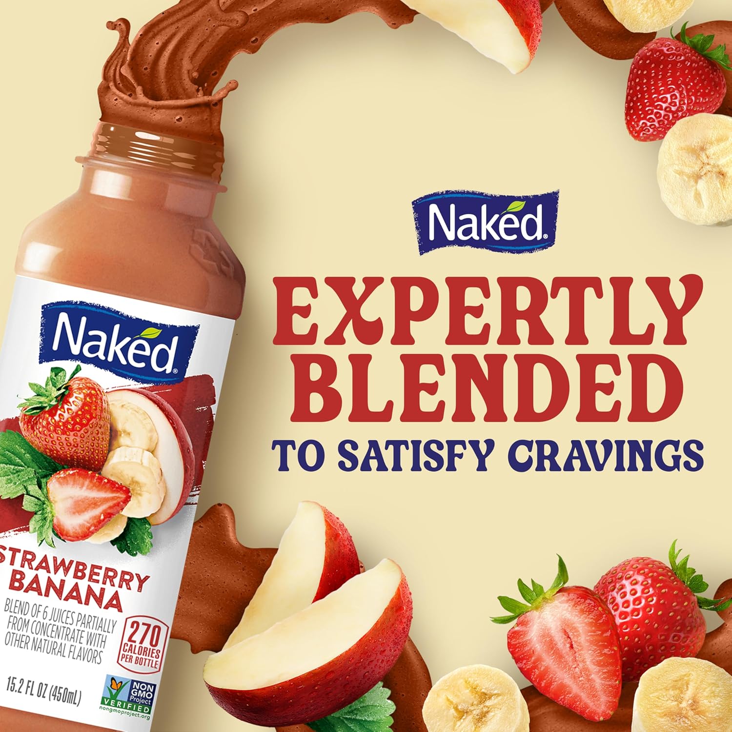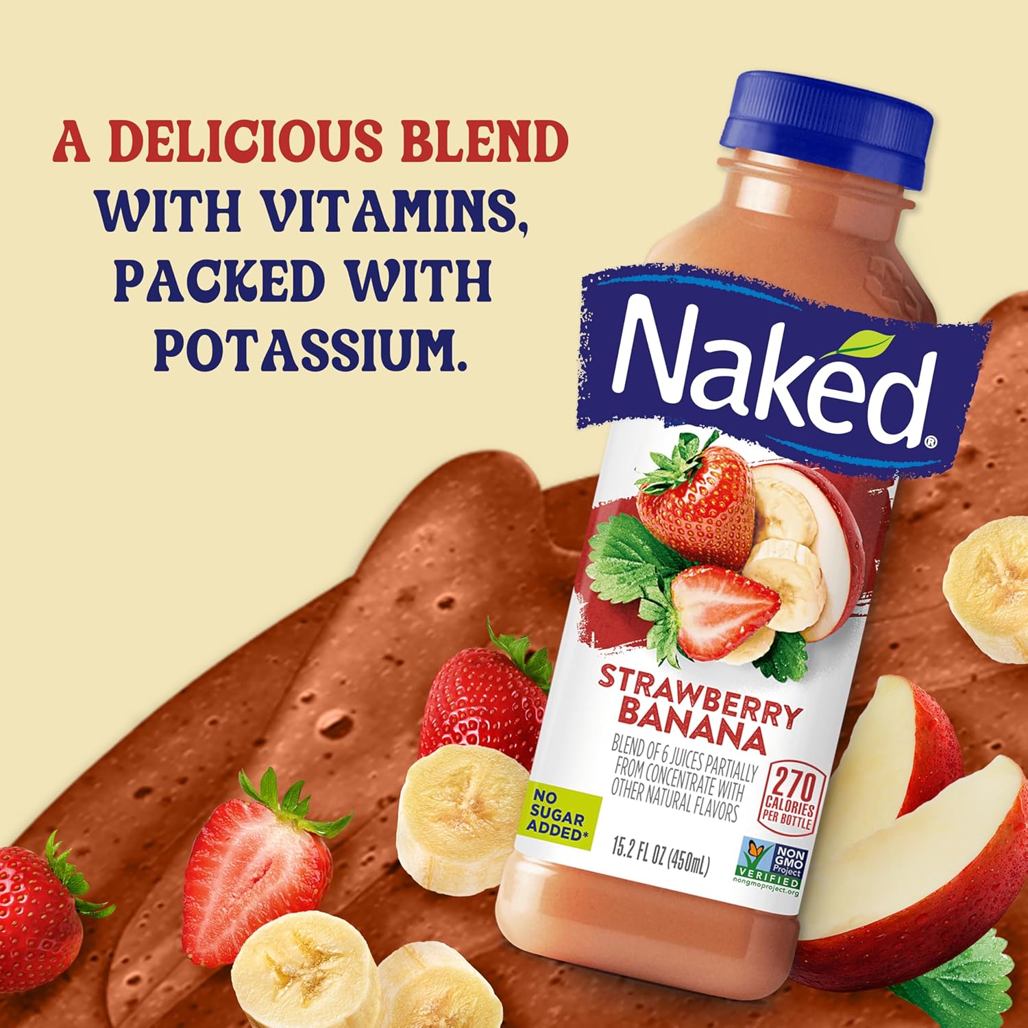 Naked Strawberry Banana Juice is a delightful and nutritious beverage made from 100% real fruit. This 15.2 oz bottle features a blend of strawberries, bananas, apples, and a hint of orange, creating a sweet and refreshing taste. With no added sugar, preservatives, or artificial ingredients, it's a wholesome way to enjoy a fruity boost. Packed with essential vitamins and nutrients, this juice is perfect for a quick and healthy pick-me-up.