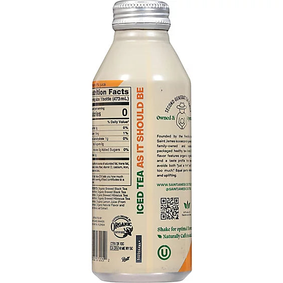 Saint James Black Tea Organic Blood Orange & Hibiscus, weighing 16.9 ounces, is a refreshing and flavorful beverage option. This iced tea is made with organic black tea and infused with the natural flavors of blood orange and hibiscus, providing a delightful and invigorating taste. It is low in calories and sugar, making it a healthier choice for those looking to enjoy a delicious drink without the guilt. Free from artificial additives and preservatives, this tea offers a pure and wholesome flavor. Whether you're enjoying it on a hot day or as a refreshing pick-me-up, Saint James Black Tea Organic Blood Orange & Hibiscus is sure to satisfy your thirst.