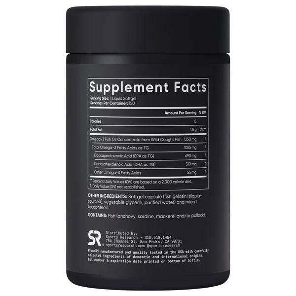 Sports Research Triple Strength Omega-3 Fish Oil, 150 Fish Softgels
