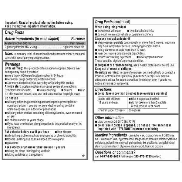Tylenol PM Extra Strength Acetaminophen 500 mg Pain Reliever & Sleep Aid, 225 Caplets