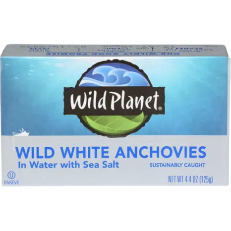 Wild Planet Wild White Anchovies in Water is a premium seafood product. Each 4.4 oz can contains wild-caught white anchovies, sustainably sourced using selective fishing methods to protect marine ecosystems. These anchovies are packed fresh in water with a touch of sea salt, preserving their delicate texture and clean, mild flavor. Rich in protein and omega-3 fatty acids, they are a nutritious addition to your diet. Perfect for rice bowls, salads, and toast, enjoy the natural goodness and subtle taste of Wild Planet Wild White Anchovies in Water in every bite.